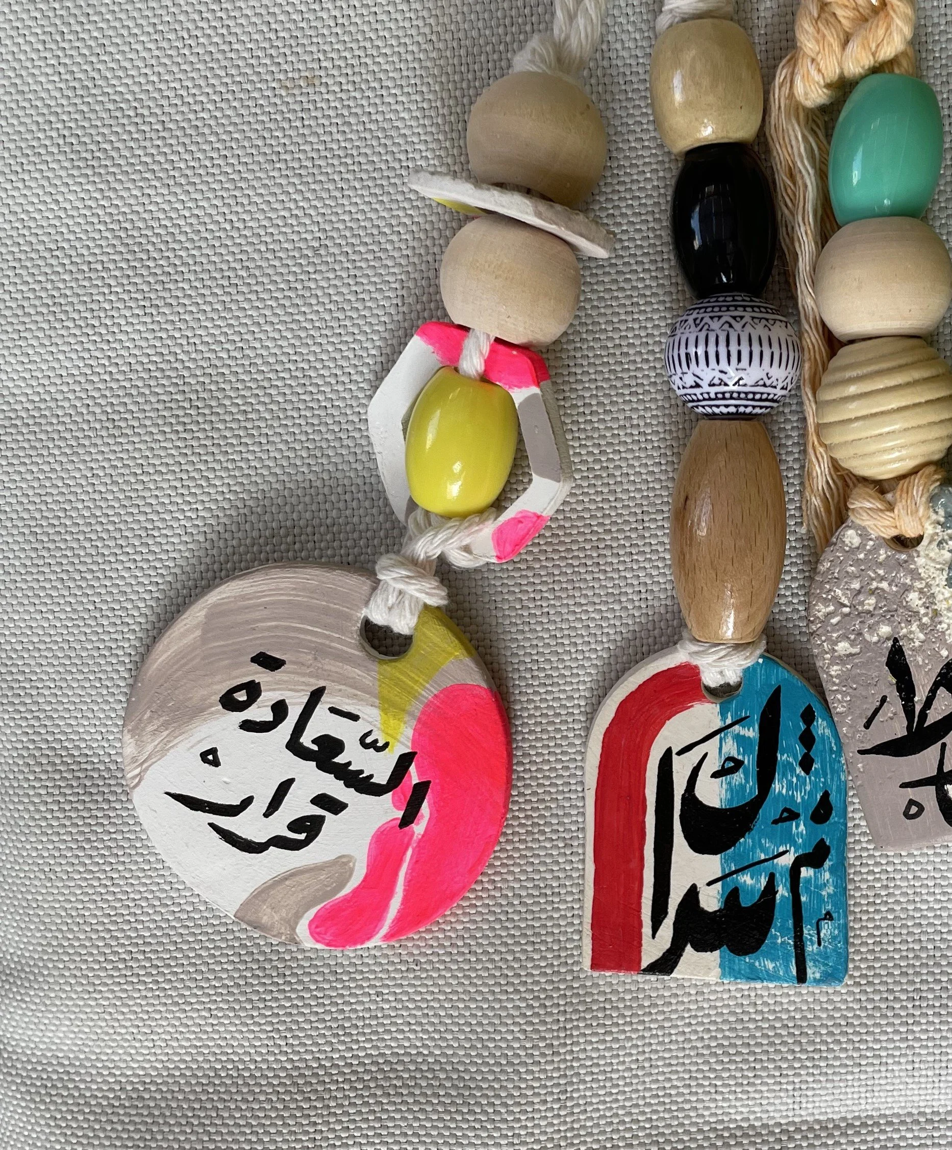 I believe what makes my brand truly unique is the message it delivers through carefully chosen positive and meaningful words, beautifully expressed in Arabic calligraphy. Each piece is created with passion and love through hand-painting and craftsmanship. My works are not just decorative accessories—they are reflections of identity, cultural beauty, and art.